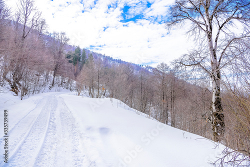 Obraz premium Beautiful snow-packed mountain road