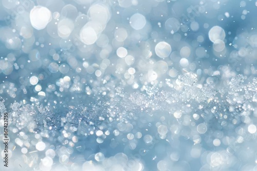 © Riya, Fototapeta premium Beautiful Snowfall Background - Soft Focus Crystal Drops on a Blue Blurred Surface