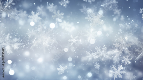 © Irina, Fototapeta premium Beautiful snowflakes and bokeh lights creating a magical winter background