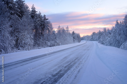 © Nejron Photo, Naklejka premium Beautiful snowy road in winter landscape