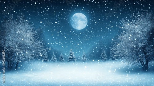 Naklejka premium Beautiful Snowy Winter Landscape Under Full Moonlight