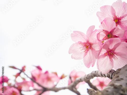 Obraz premium Beautiful soft light pink sakura or cherry blossom and white background