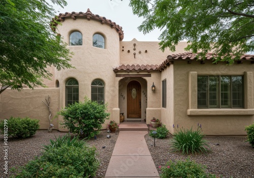 © Sarwar, Fototapeta premium Beautiful southwest home design with stucco and tile roof detail