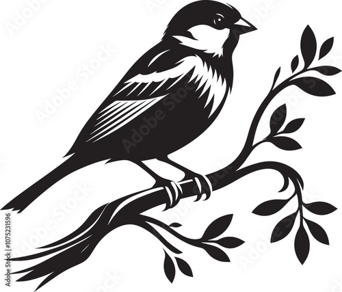 © Md Hasan, Naklejka premium Beautiful sparrow bird silhouette vector illustration isolated on white background