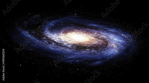© Fuad, Naklejka premium Beautiful spiral galaxy in deep space with stars on black background