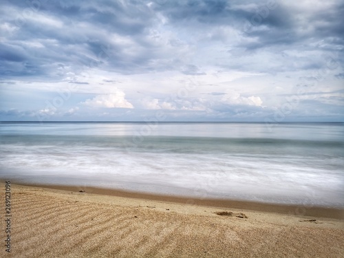 Obraz premium Beautiful splashing swash silky smooth water on the beach during sunny day.