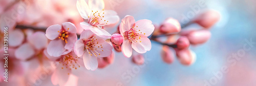 © mingnimit, Fototapeta premium Beautiful spring background with blooming cherry blossoms in soft colors