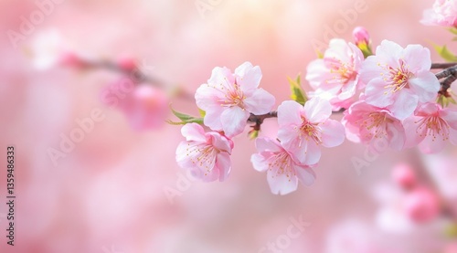 © Loolo, Fototapeta premium Beautiful spring background with blooming pink peach blossom flowers, pastel colors