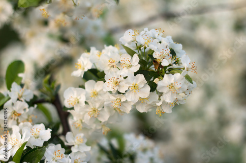 © Mariana Rusanovschi, Obraz premium Beautiful spring blooming cherry tree, white flowers