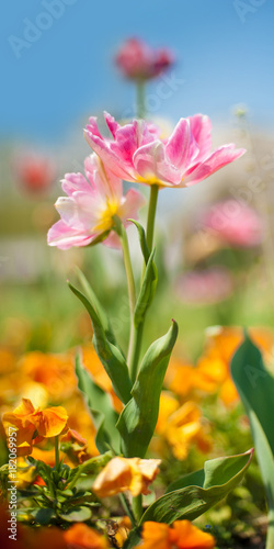 Fototapeta premium Beautiful spring flowers in beautiful spring field