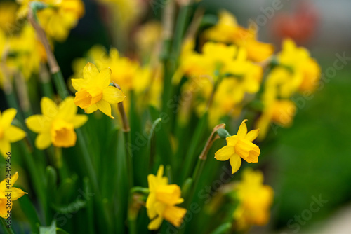 Fototapeta premium Beautiful spring flowers on a defocused background