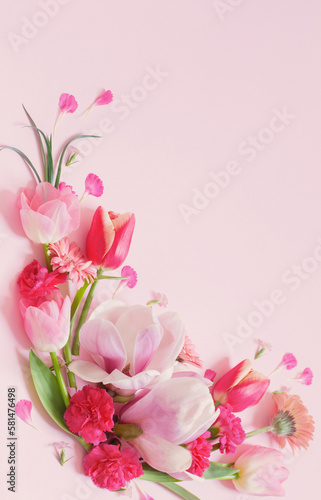 © Maya Kruchancova, Fototapeta premium beautiful spring flowers on pink background