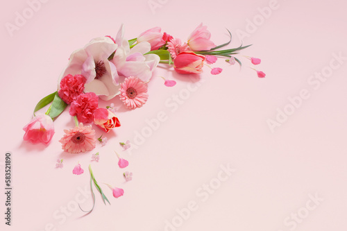© Maya Kruchancova, Fototapeta premium beautiful spring flowers on pink background
