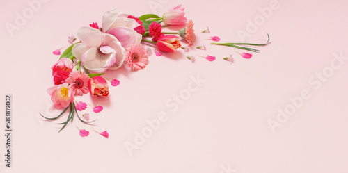 © Maya Kruchancova, Fototapeta premium beautiful spring flowers on pink background