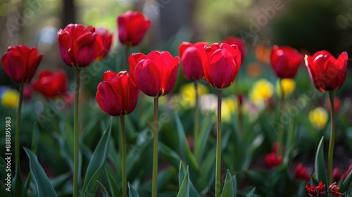 Obraz premium Beautiful Spring Garden Blooms with Red Tulips