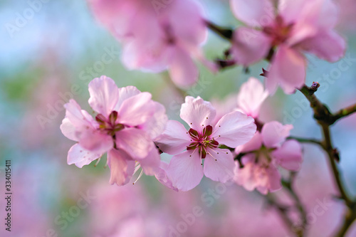 Obraz premium beautiful spring landscape - blooming trees, bright pink and white flowers as...