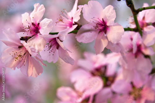 Obraz premium beautiful spring landscape - blooming trees, bright pink and white flowers as...
