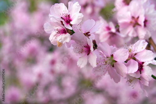 Obraz premium beautiful spring landscape - blooming trees, bright pink and white flowers as...