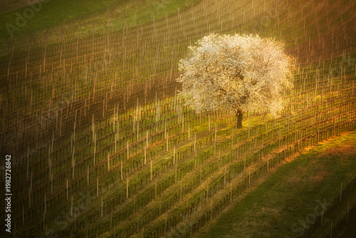 © Piotr Krzeslak, Fototapeta premium Beautiful spring landscape with blossoming tree