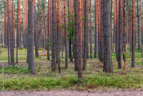 © Андрей Иванов, Obraz premium Beautiful spring pine forest with paths.