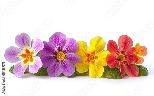 © Adi, Fototapeta premium Beautiful spring primula flowers isolated on a white background