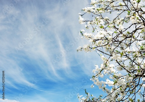 Fototapeta premium Beautiful spring tree flowers over blue sky