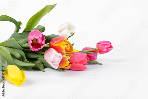 Obraz premium Beautiful, spring tulips on white background