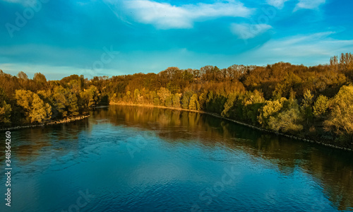 Fototapeta premium Beautiful spring view with reflections near Ettling, Isar .barrage, Bavaria,...