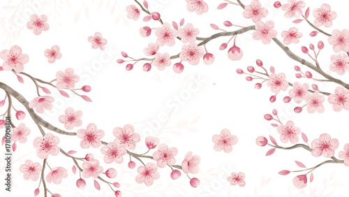© Md Nayem, Fototapeta premium Beautiful spring watercolor painting with cherry blossom branches and flowers