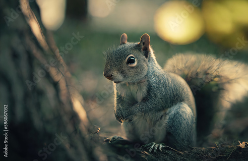 Obraz premium Beautiful squirrel in nature. Created using Generative AI technology.