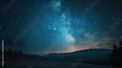 © kampret 99, Fototapeta premium Beautiful starry night sky with a large milky way landscape