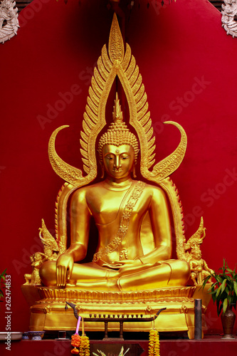 Fototapeta premium Beautiful Statue of Buddha on red background in thailand. Buddhism.