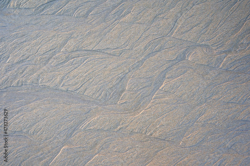 Fototapeta premium Beautiful structures in the brown sand beach. Ideal as background. View from above. Pattern.