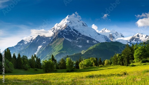 © Subpraew, Obraz premium Beautiful summer day with mountain blooming meadows green landscape
