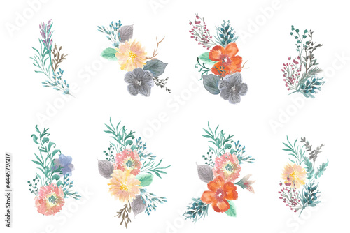 Obraz premium Beautiful summer floral bouquet watercolor collection