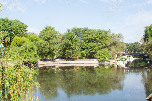 Obraz premium Beautiful summer lake in the city park