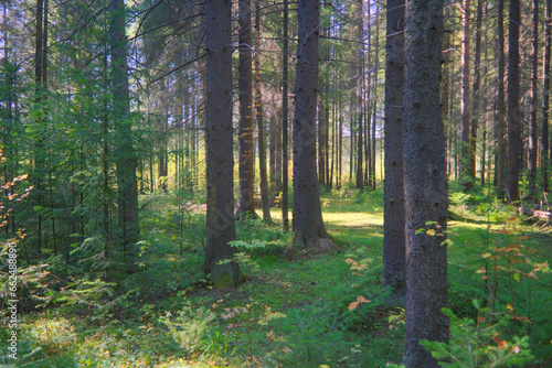 Fototapeta premium Beautiful summer landscape in a coniferous forest in the Ural Mountains.