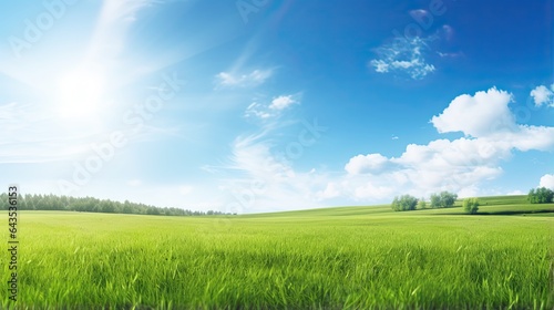Obraz premium Beautiful summer landscape with green meadow and blue sky with clouds