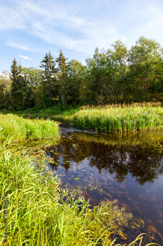 Fototapeta premium Beautiful summer landscape with small tranquil river in sunny da