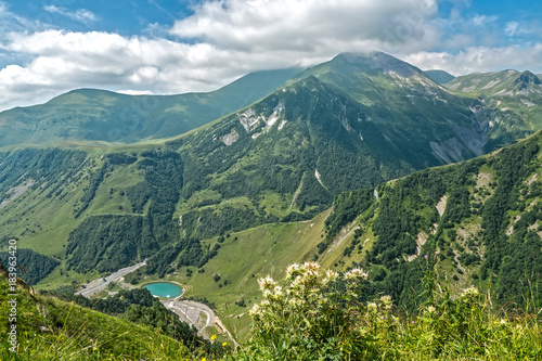 © Vasilii, Fototapeta premium Beautiful summer mountain landscape with lake below