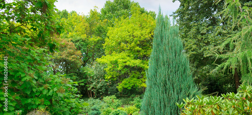 © alinamd, Obraz premium Beautiful Summer Park Landscape with Diverse Foliage and Textures
