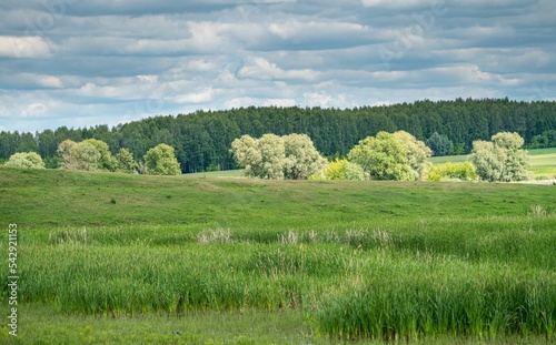 © kotopalych, Obraz premium beautiful summer sunset landscape in the village