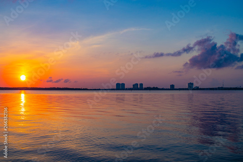 Naklejka premium Beautiful sun over the city of Fort Myers skyline reflecting of the gulf of Mexico