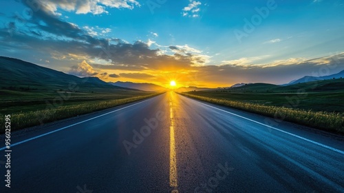 © Achmad Khoeron, Naklejka premium beautiful sun rising sky with asphalt highways road