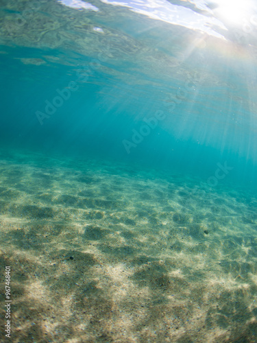 Fototapeta premium Beautiful sunbeam on the shallow beach underwater.
