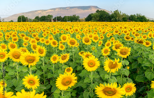 Obraz premium Beautiful sunflower field on summer at Lop buri
