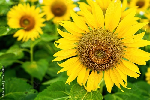 Fototapeta premium Beautiful sunflower flower blooming in sunflowers field.Thailand.