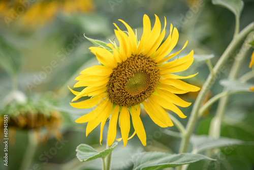 Fototapeta premium Beautiful sunflower on a sunny day with a natural background. Selective focus. High quality photo