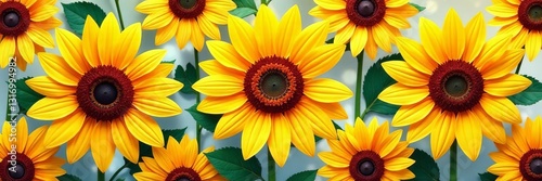 © Chalermrach, Obraz premium Beautiful sunflower repeat design for fabric or wallpaper, floral, fabric, seamless