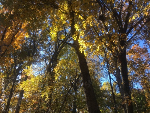 Obraz premium beautiful sunlit forest fall foliage